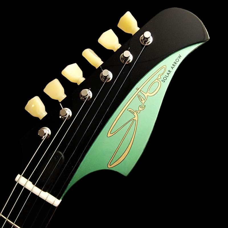Introducing the Solar Arrow. Deeply sculpted, the Solar Arrow is sleek and aggressive. Set neck construction with available Tuneomatic bridge and Stopbar tailpiece. Designed for harder rock styles, nothing else delivers like the Solar Arrow.